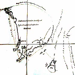Inselgruppe. Er segelte entlang der Ost-, Süd- und Westküste. Da das