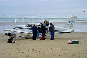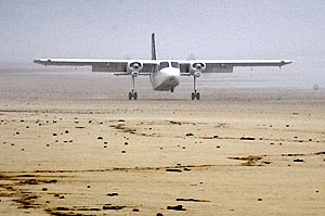 there he goes smoothly unto the beach. The plane rolls slowly towards a