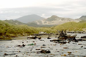Hinter den Dünen beginnt eine grosse Ebene mit Hügeln und dem roten