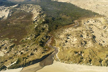 fliegen wir über die Ebene und die riesigen Sanddünen die Masons Bay so