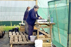 to the nursery. I am detailed to replant little Pingao grass seedlings.